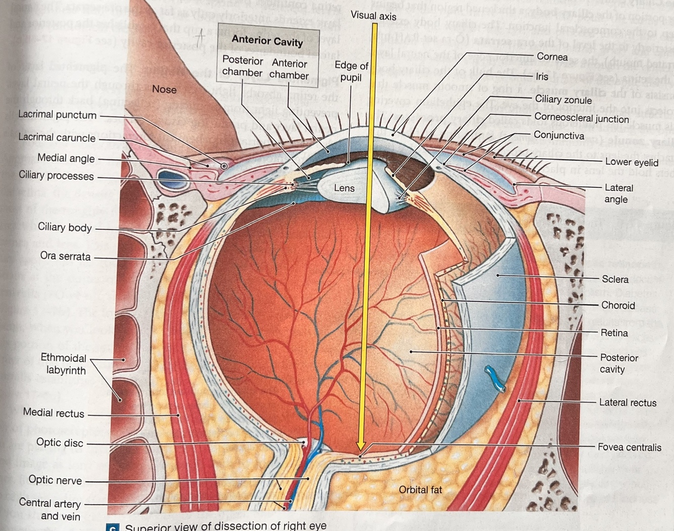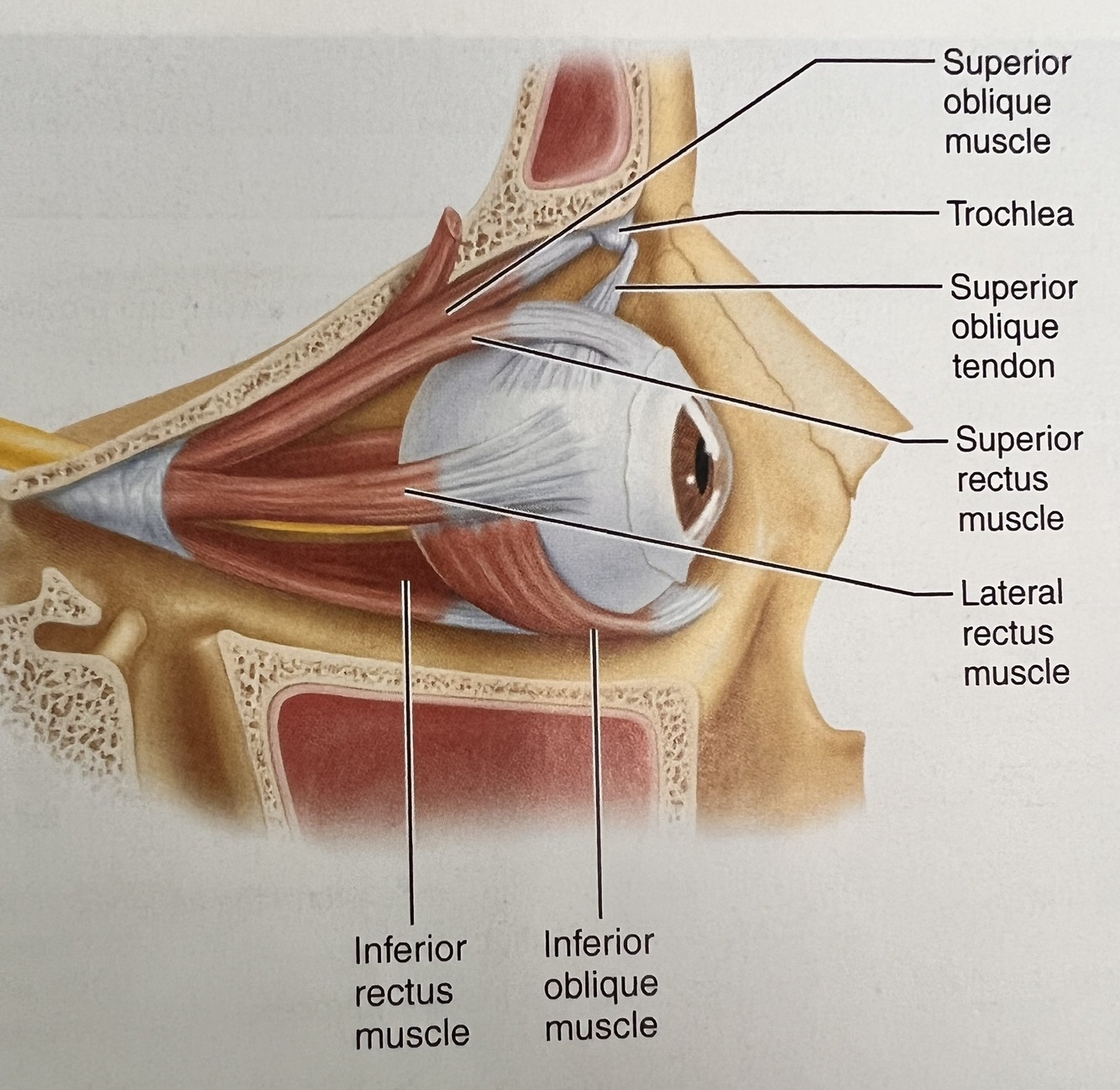 The extrinsic muscles (which are the recurs and the oblique muscles) make it possible to to keep moving objects focused on the fovea centralis. They are responsible for the convergence (the movement of the eye to allow near vision)