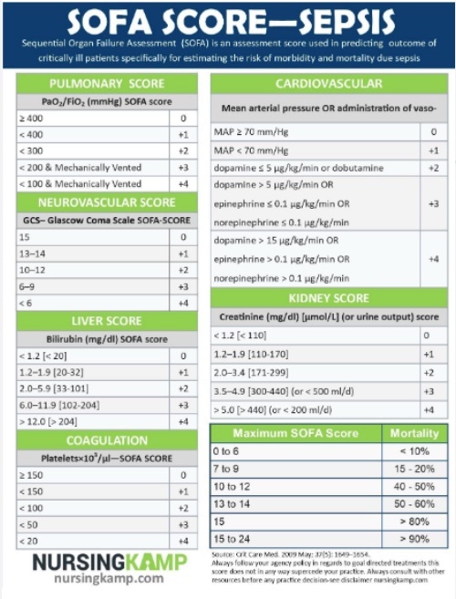 SOFA 10-11 - 50% chance mortality