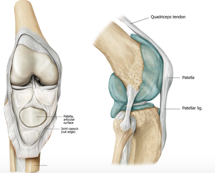 Anteriorly: quadriceps tendon/ patellar ligament