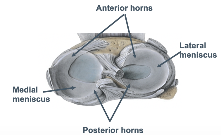 2 crescent shaped fibrocartilage pads within the knee joint