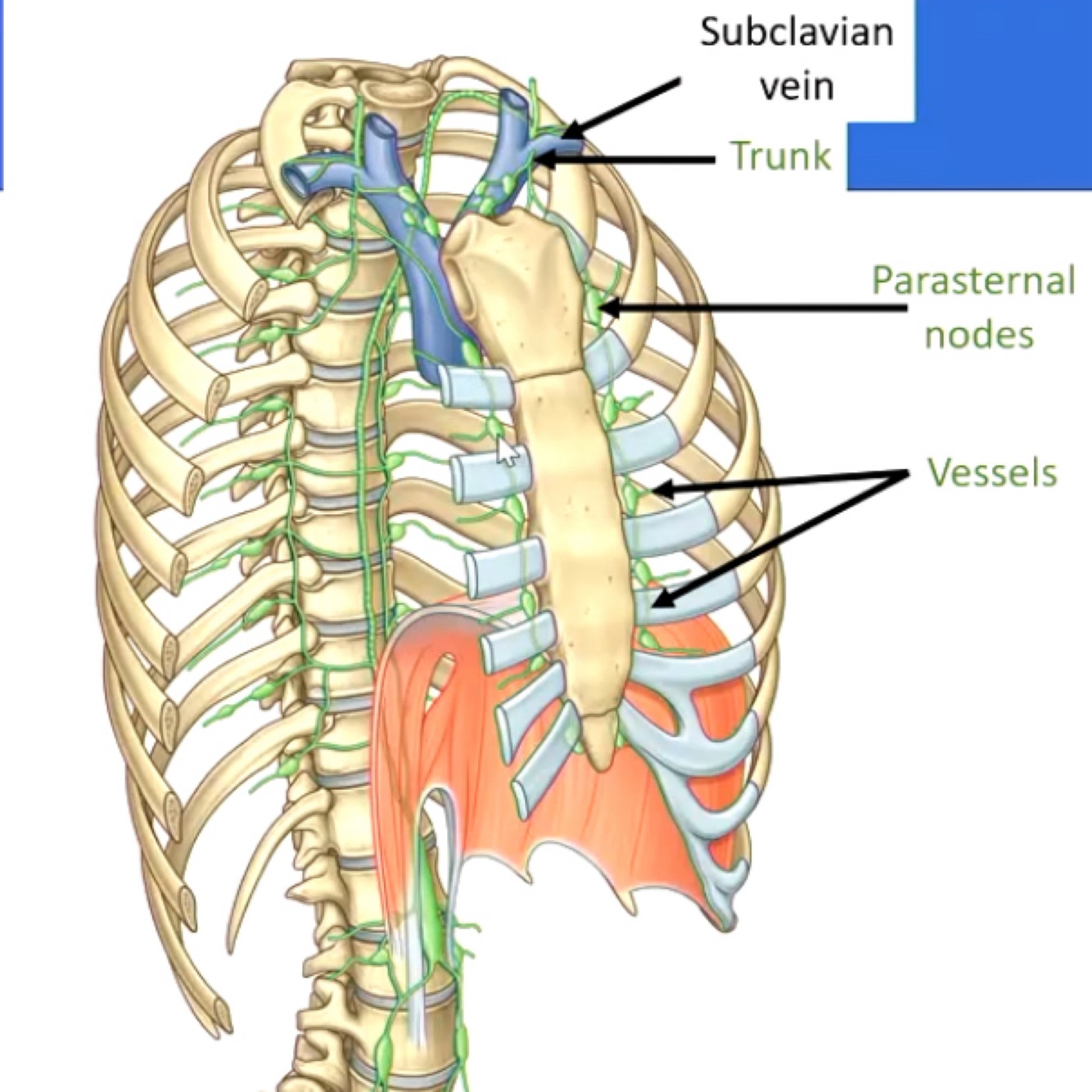 Lymphatic vessels from anterior thoracic wall (and the medial breast) drainage pathway
