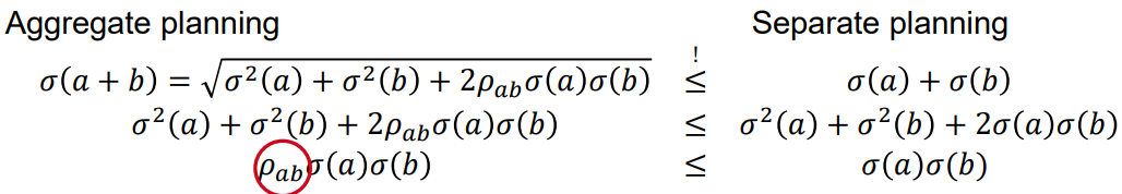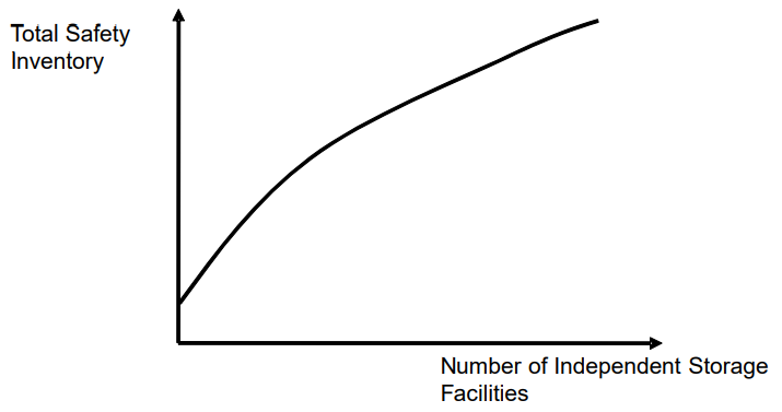 Square-root Law: Reducing the number of independent stocking locations by a factor of 𝑛, the average safety inventory can be reduced by a factor of sqrt(𝑛).