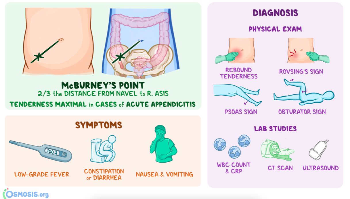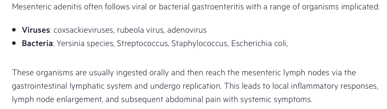 • Mesenteric adenitis (ask about viral illness like tonsillitis)