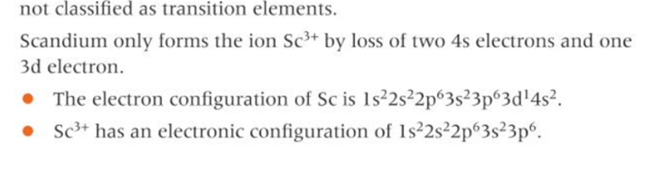 why is scandium not a transition metal