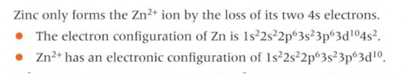 does not form an ion with a partially filled d orbital - has a full d orbital