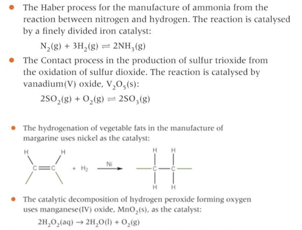 examples of reactions where the transition metal is a heterogenous catalyst