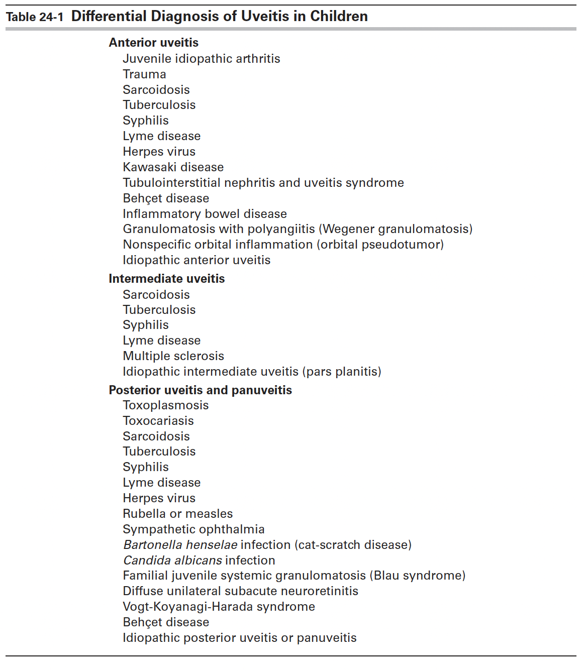 Juvenile idiopathic arthritis (JIA) (formerly, juvenile rheumatoid arthritis) is the most common identifiable etiology of childhood anterior uveitis. (Après idiopathique)