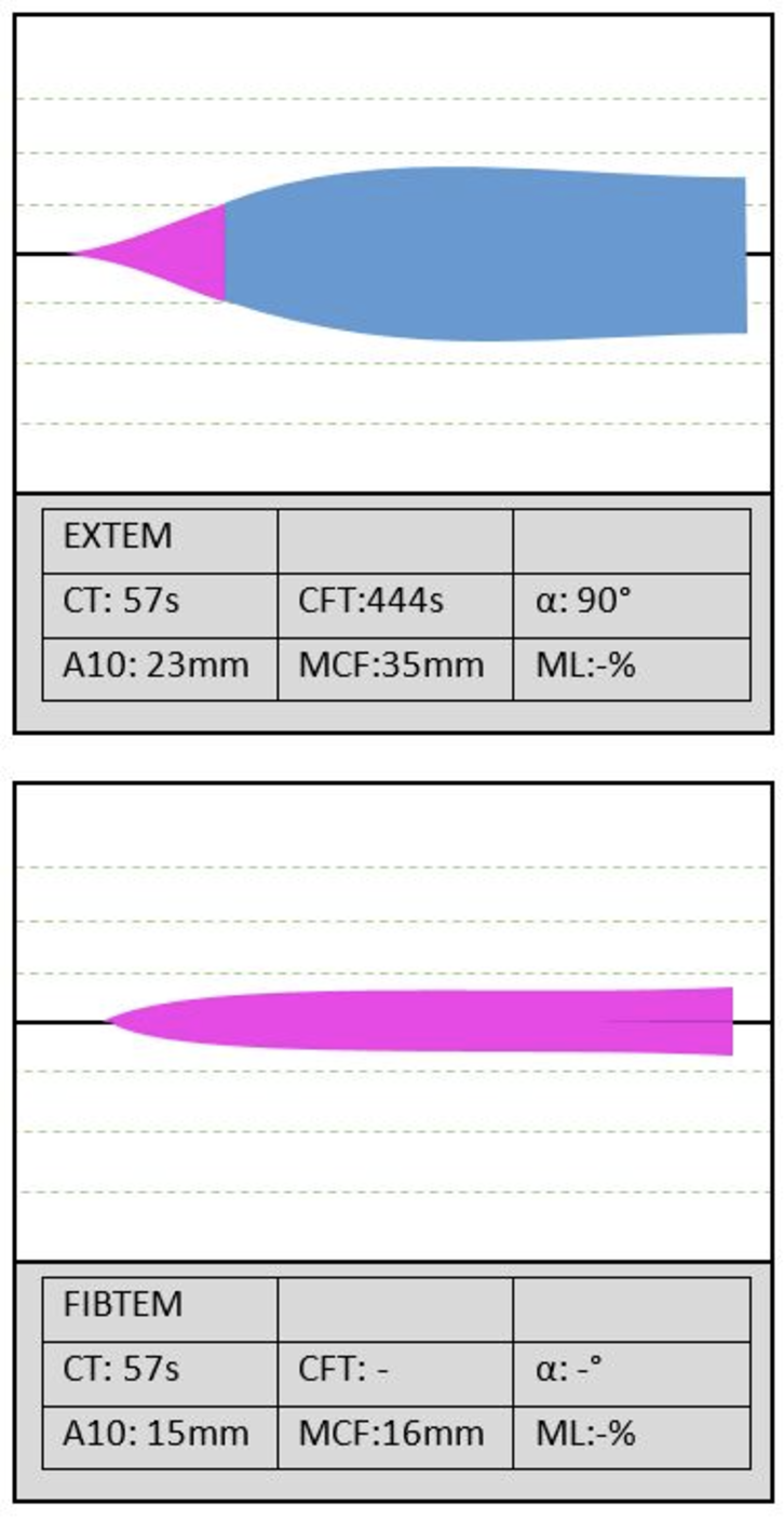 (ROTEM with low Extem A10 and normal Fibtem A10)