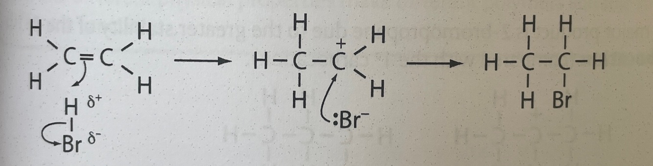 What is shown by the curly arrows of this electrophilic addition