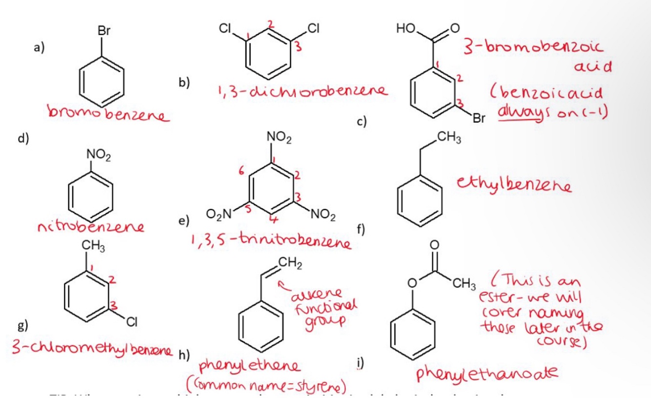 • Working out where the number starts – look to see if it is based on methylbenzene, chlorobenzene or nitrobenzene etc.
