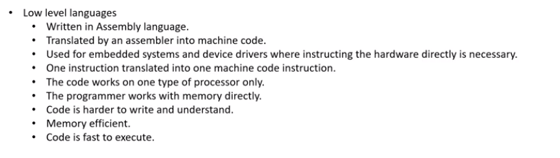 • Used for embedded systems and device drivers where instructing the hardware directly is necessary.