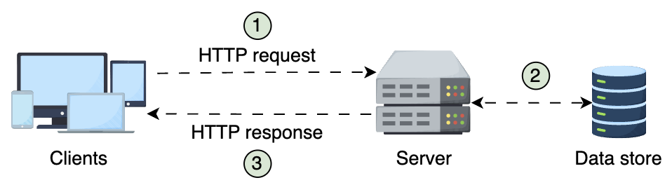 Servers process the request and return structured data (e.g., JSON).