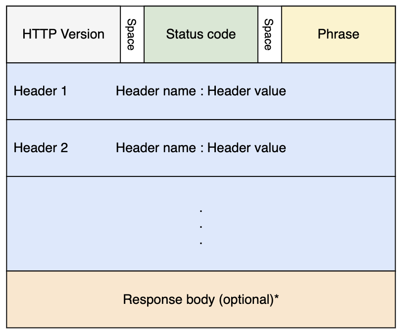 Status Line: Includes HTTP version and status code (e.g., HTTP/1.1 200 OK).