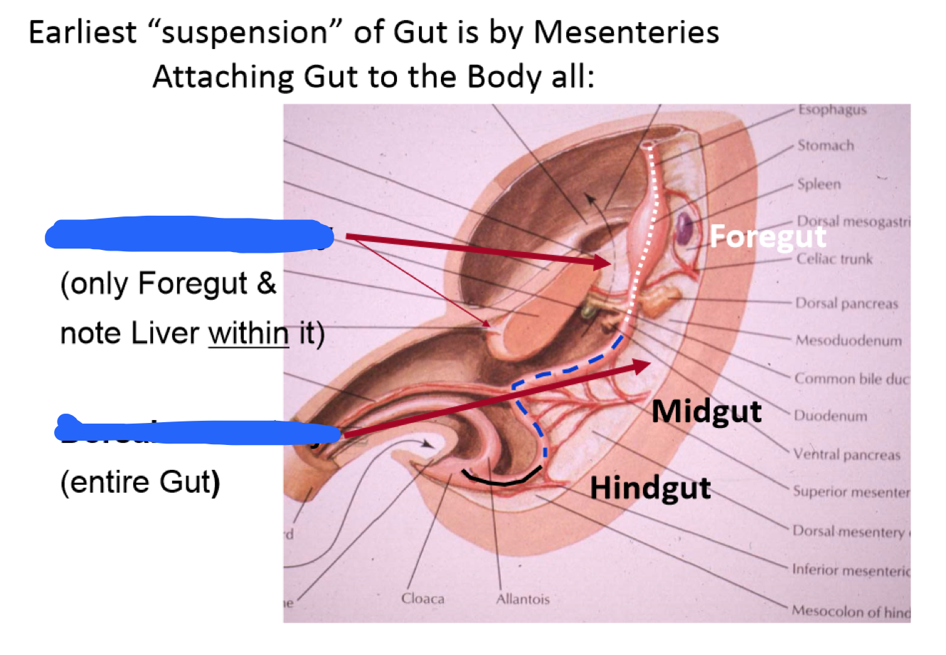 What two extraembryonic structures provide additional features the the primitive gut tube?
