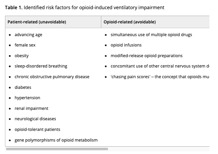 The PRODIGY (Prediction of Opioid-induced respiratory Depression in patients monitored by capnoGraphY) trial studied the occurrence of OIRD in postoperative patients on potent opioids. A risk prediction tool was developed that showed that five independent patient-related variables were associated with a high likelihood of OIRD: age ≥60 yrs, male sex, opioid naivety, sleep disorders and the presence of chronic heart failure.