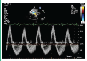 This Doppler trace obtained by transoesophageal echocardiography of the descending aorta suggests
