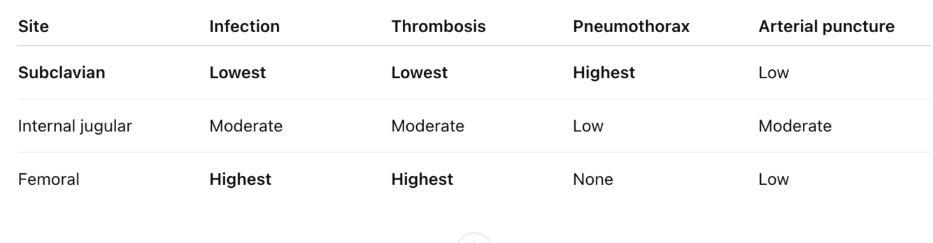 Re: site of CVL, subclavian lines have lowest complication rate of: