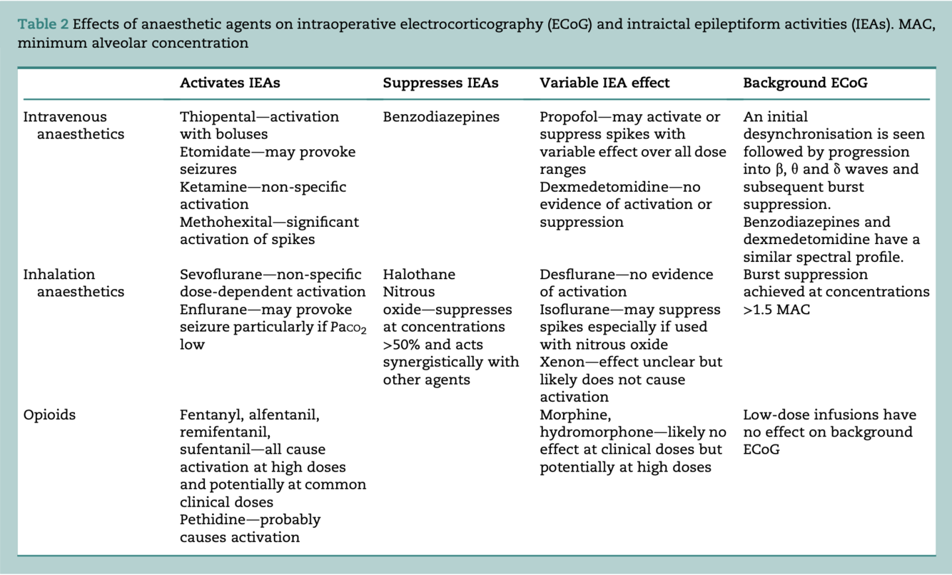 ECoG, pharmacoactivation may be required in order to activate IEAs. Potent short-acting m-agonists can be used to increase IEAs and alfentanil, remifentanil, fentanyl and