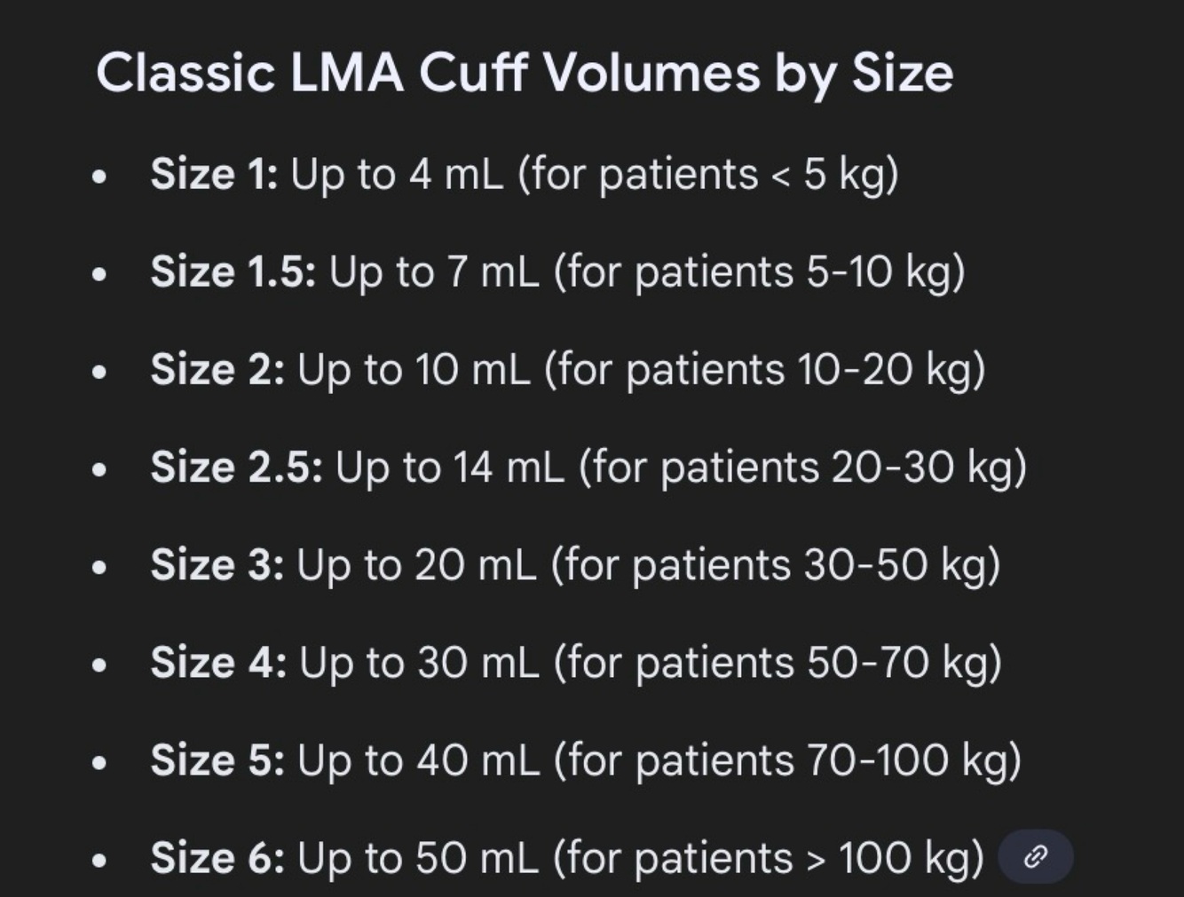 What volume of air is used for the cuff of classic LMA size 4 if the manometer is unavailable?