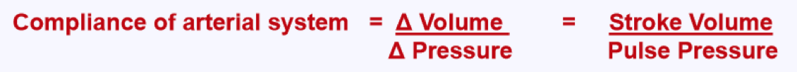 What is the formula for compliance of the arterial system?