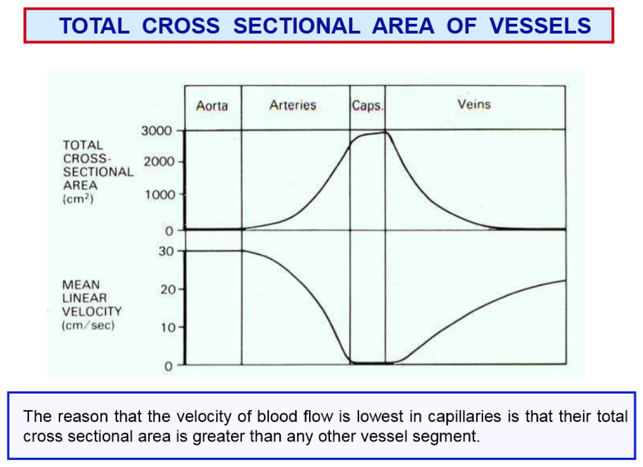 But wait!!! The cross sectional area of a capillary is so so small…. How could this account for the blood flowing so slowly in the capillaries?