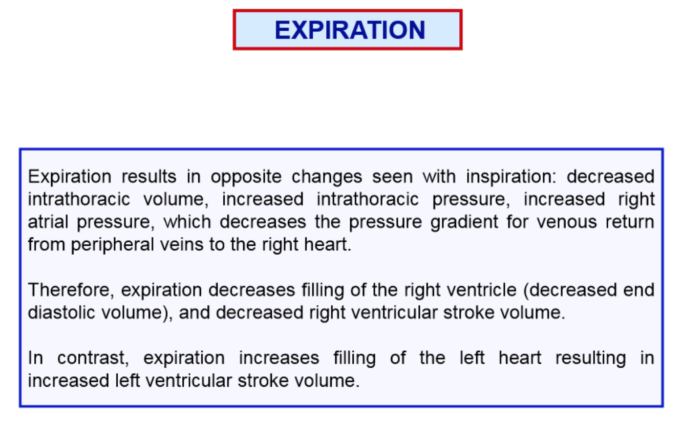 How will expiration be different in its effects on the left and right heart?