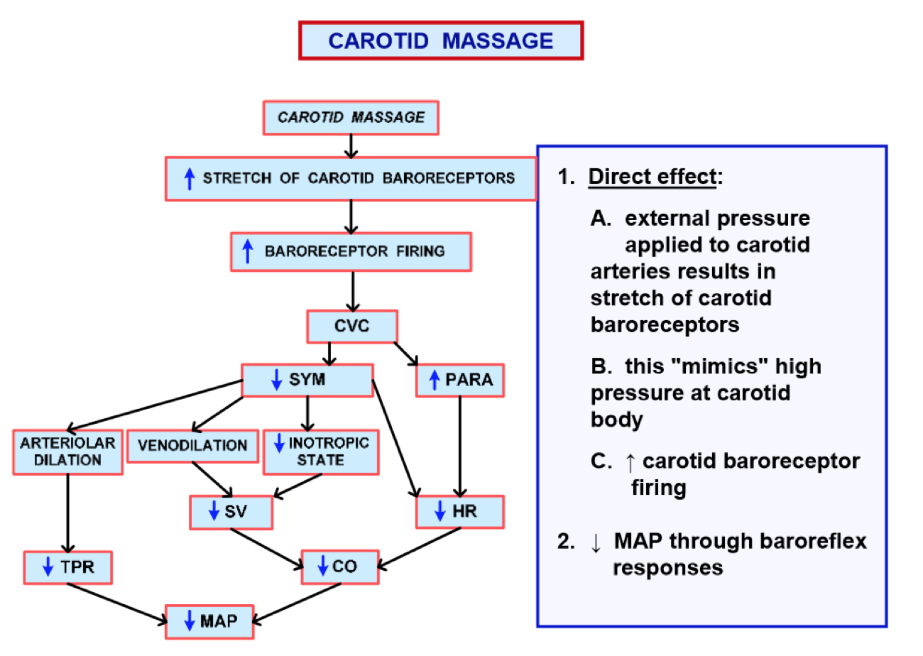 What will be the baroreflex response be to carotid massage?