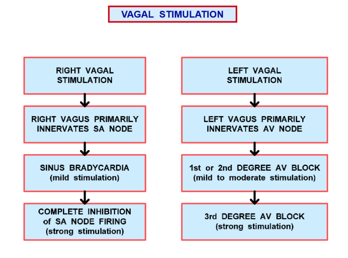 How will left vagal stimulation differ from right?