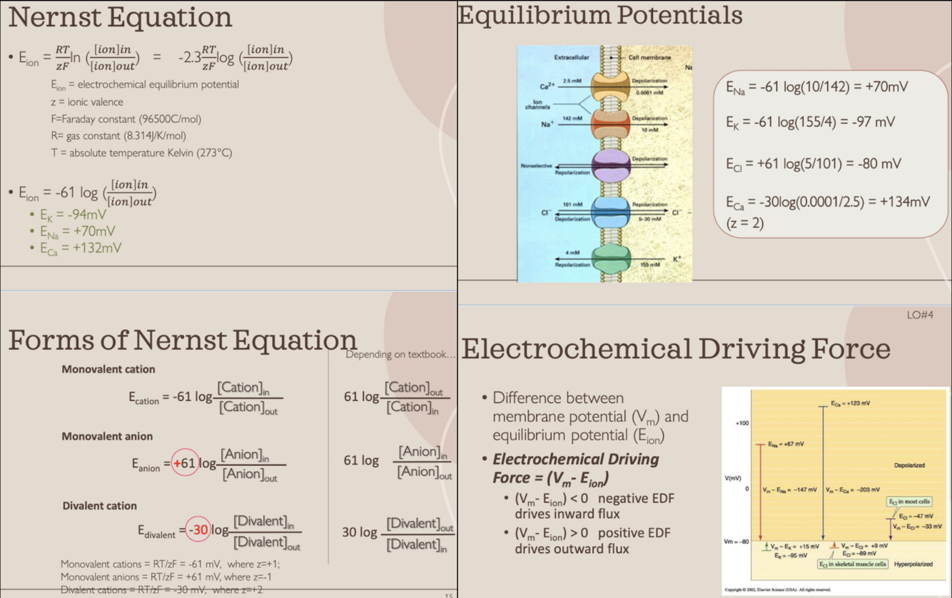 Describe the Nernst equation and how it is used in membrane potentials.
