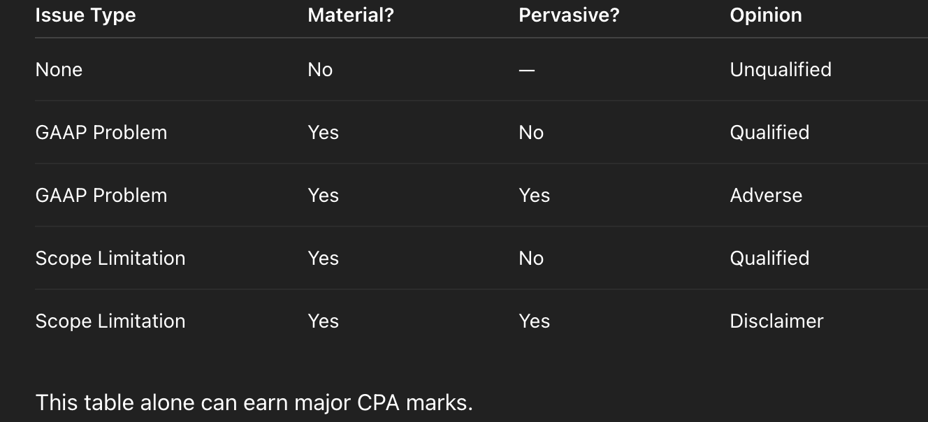 These reasons indicate issues that affect the auditor’s ability to provide a clean opinion.