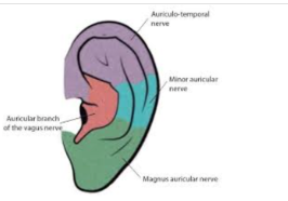 Innervation of ear ? pointing to the upper (purple) part of ear.