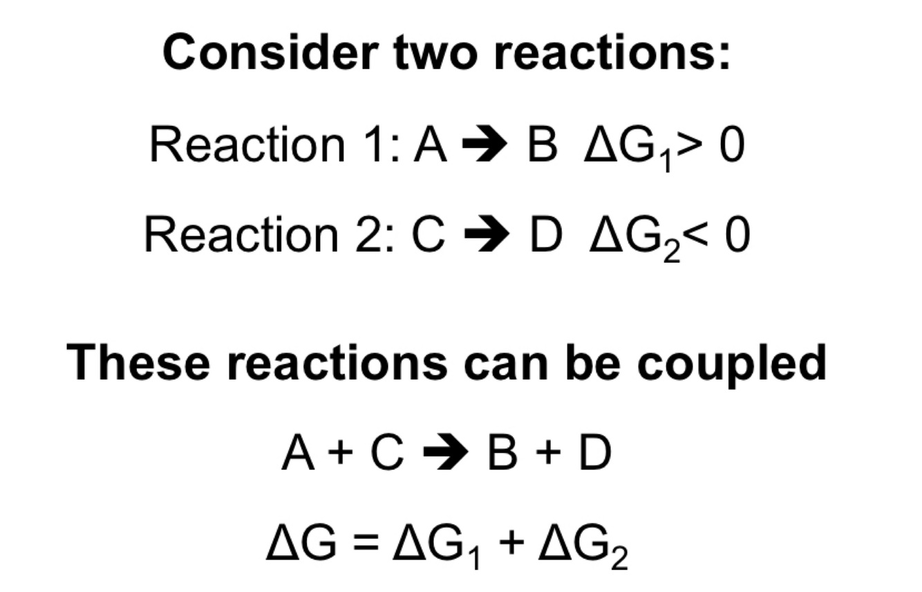 If ΔG1 + ΔG 2 < 0 then coupled reaction is energetically favourable