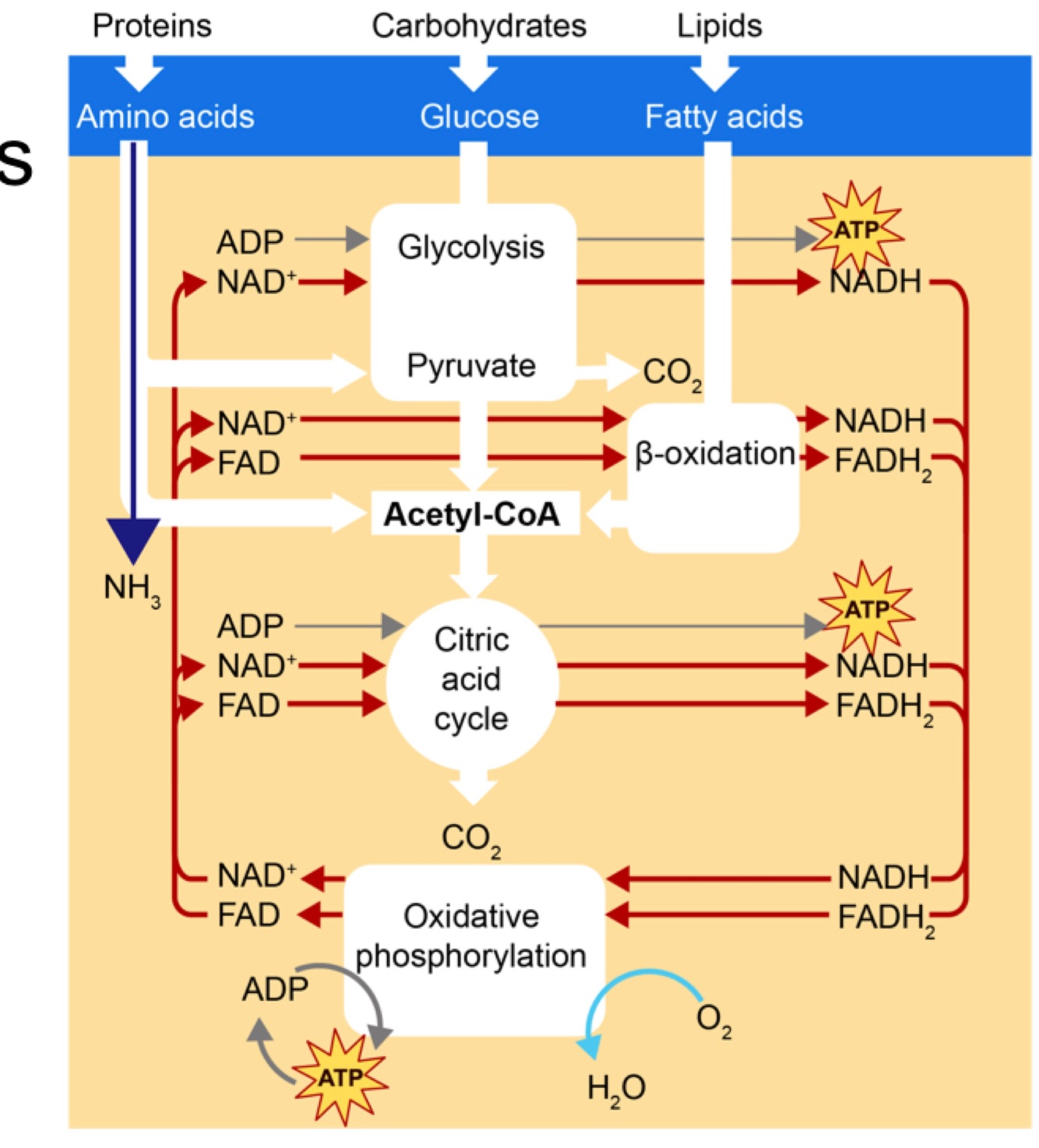 Pathways for processing food molecules for ATP synthesis - two key reaction types?