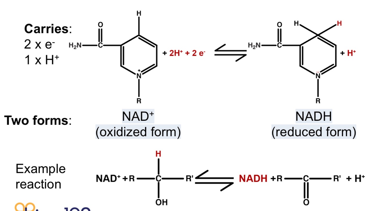 NAD undergoes a two-electron reduction ( accepts two reducing equivalents)