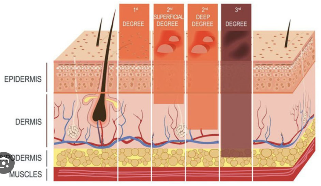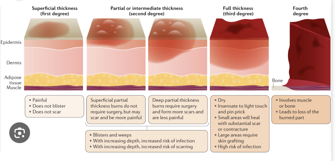 Tx - cleaning regularly, cover with dressing, silver sulfadiazine