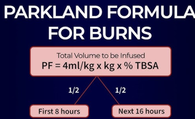 3 to 4ml/kg/%TBSA (usually 3 in children) = total amount in first 24 hours