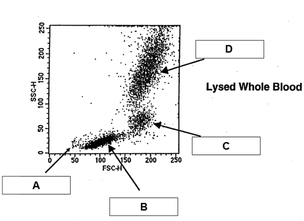 Indicate the peripheral blood populations depicted in the attached histogram.