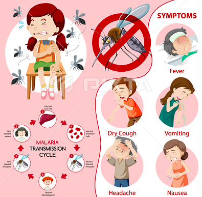 What organism causes malaria and when do children present?