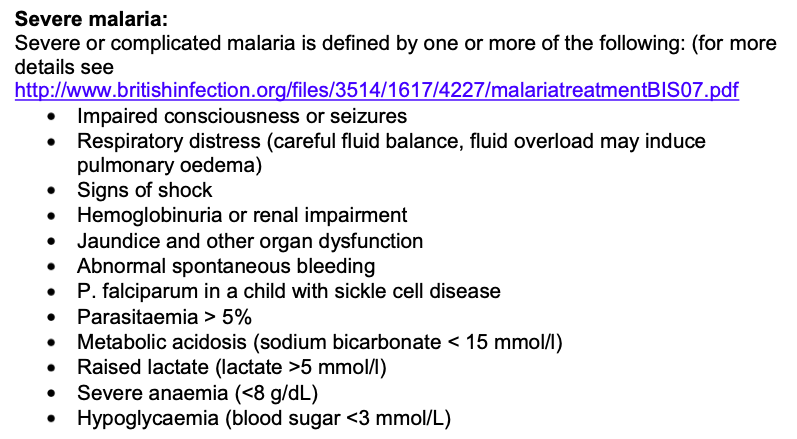 What are some signs of severe malaria?