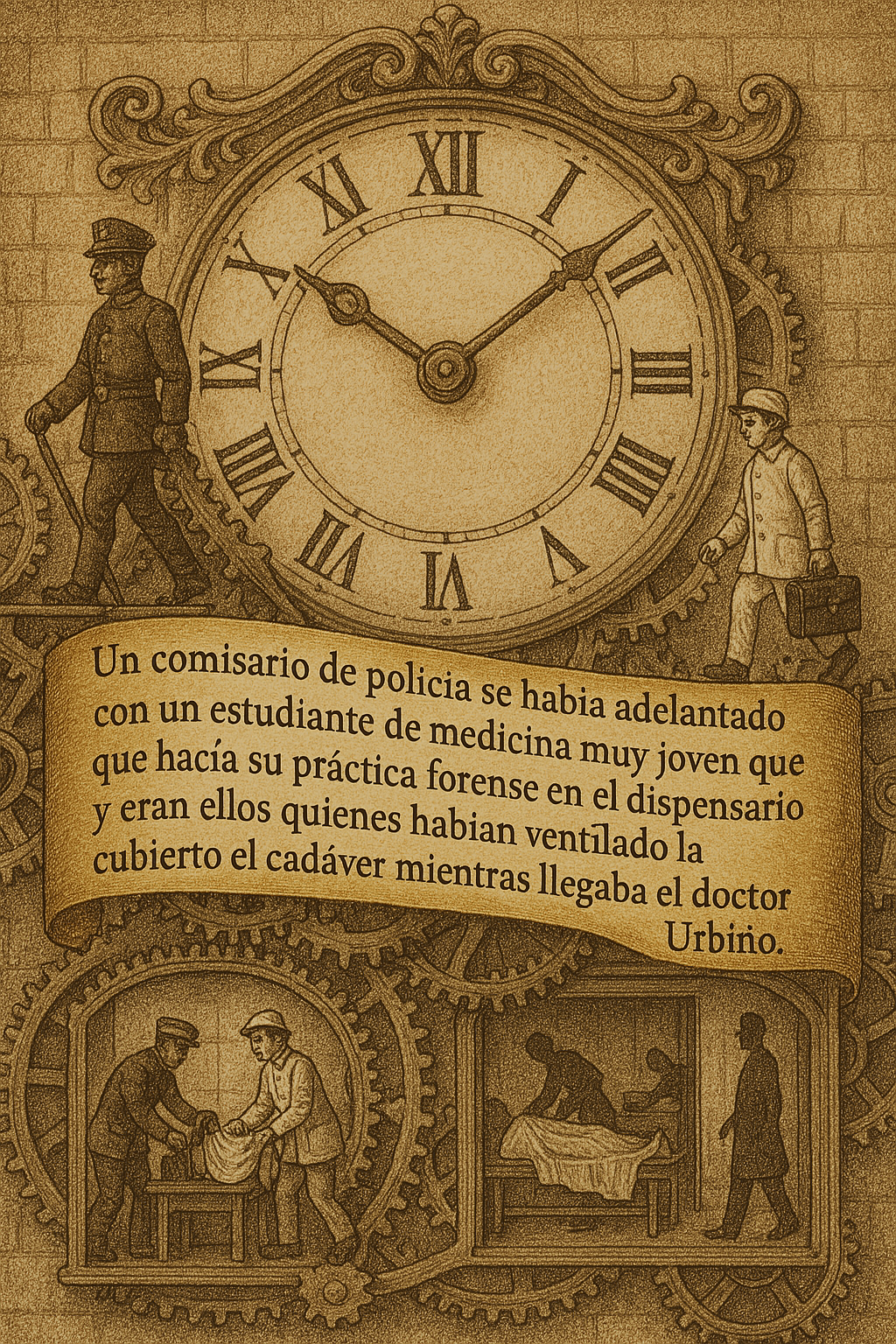 Un comisario de policía se había adelantado con un estudiante de medicina muy joven que hacía su práctica forense en el dispensario municipal, y eran ellos quienes habían ventilado la habitación y cubierto el cadáver mientras llegaba el doctor Urbino.