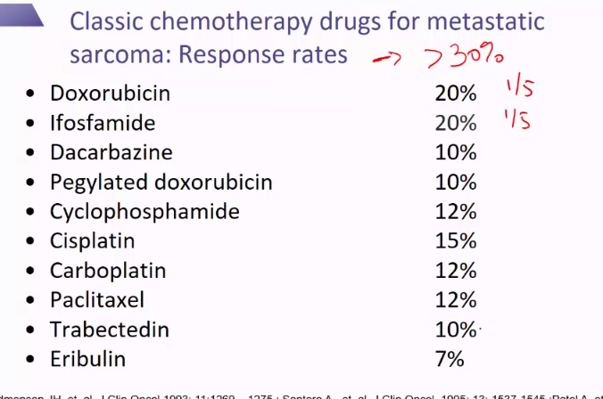 ~1/5 of patients achieve response on doxorubicin or ifosfamide