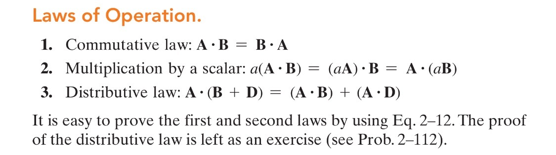 Laws of Operation of Dot Product