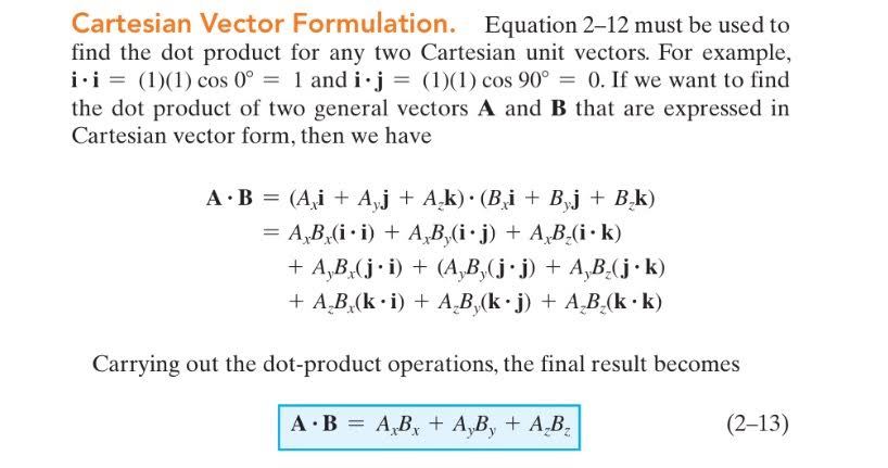 Cartesian Vector Formulation of Dot Product