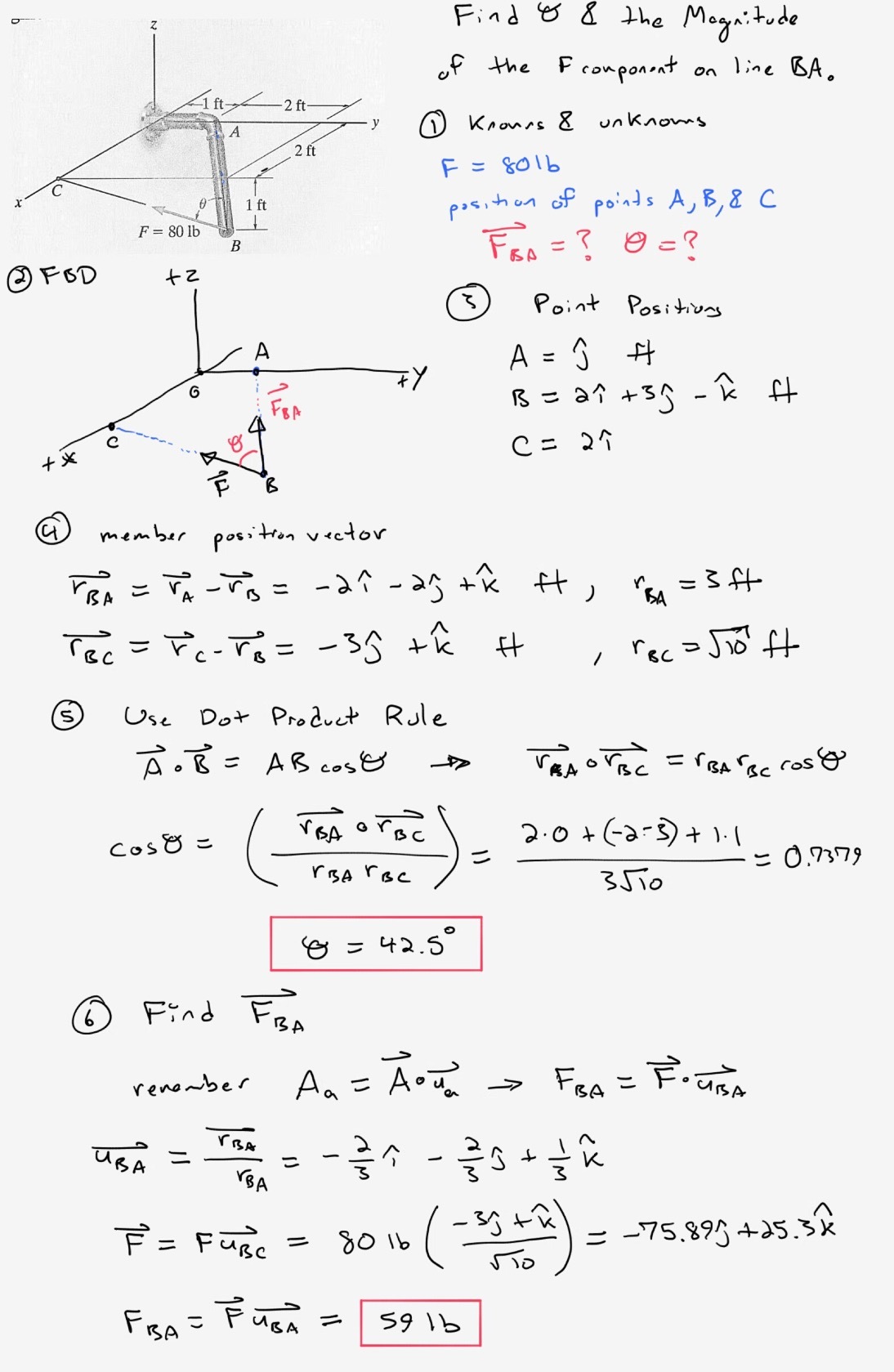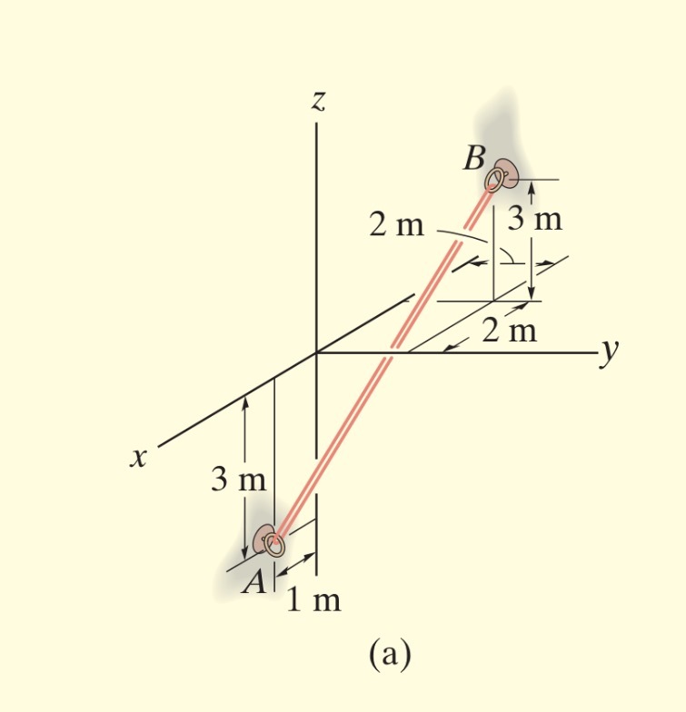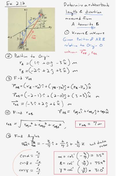 An elastic rubber band is attached to points A and B as shown. Determe its length and its direction mesured from A towards B