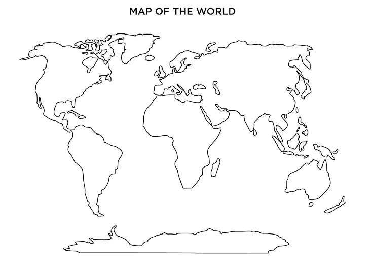 List the continents and identify where they are on the map below.