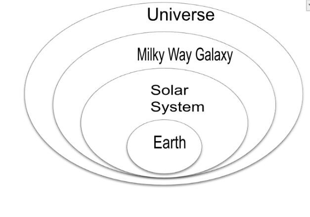 Our Earth is in the Solar System which is in the Milky Way Galaxy which is in the Universe.