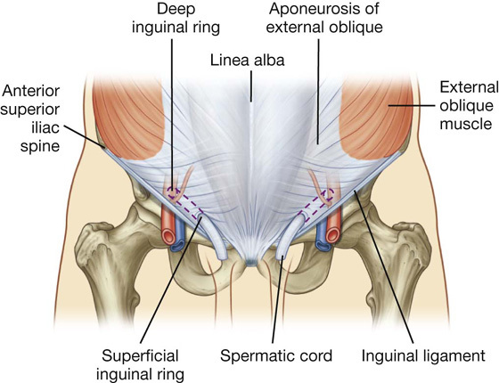 Describe where the deep and superficial inguinal rings can be found