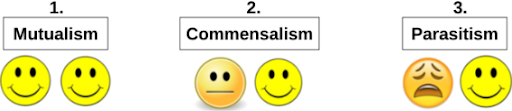 There are 3 types of symbiotic relationships among species of organisms in an ecosystem.