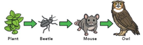 Identify the secondary consumer (2°) in this food chain and the organism they eat.