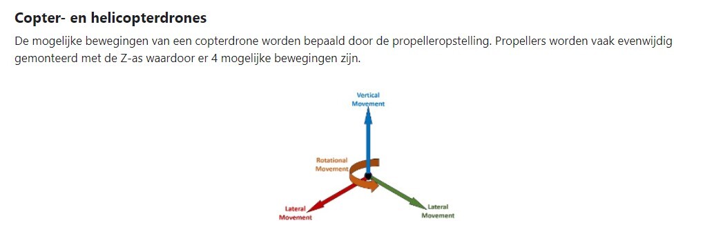 welke 4 mogelijke bewegingen zijn er bij een copter- en helicopterdrones